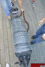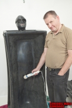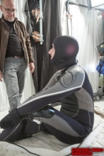 Trapper Smith came for a visit with his usual assortment of spandex suits. His first request was to be chained down to our bondage table with metal shackles. He had watched this very scene on our site with Rubber Pooka, and wanted to experience it for himself. The beauty of his scene is the feeling of utter helplessness created by the metal shackles. In addition, the clanking sound of the chains only amplifies the sense of restriction - you are not going anywhere! Trapper totally enjoyed his experience.