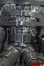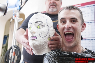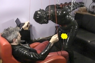 This is an old video from the archives in the 4x3 screen size. Rubber men enjoy doning multiple layers of skin-tight material which provides them with an intense cocooning experience. In this video Rank applies ten layers of material to his test gimp: neck-entry latex catsuit, neoprene wetsuit, pallet wrap, white duct tape, another neoprene wetsuit, pallet wrap, red duct tape, Aquala rubber dry suit, rubber boots-chest waders, and a rubber motorcycle jacket. Unbelieveable! Needless to say the gimp was barely able to move let alone extract himself from the layers. What an extreme cocooning experience!